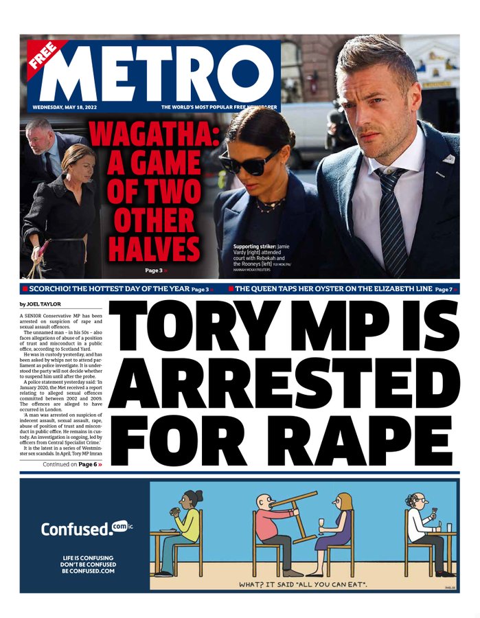 Kirsty WigglesworthAP A n unnamed member of the United Kingdoms Conservative Party has been arrested on suspicion of rape and. May 18 2022 525am Normal text size Larger text size Very large text size London. The arrest marks a shitshow of a 2022 for the tories following the conviction of mp imran khan on charges of sexually assaulting a teenage boy the resignation of mp neil parish after he was twice caught watching porn on his phone in the fucking parliament chamber in session the suspension of mp david warburton for us republican-style coke.
