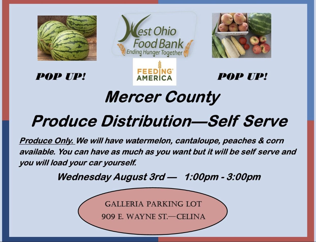 CELINA The West Ohio Food Bank will distribute food from 1 pm.